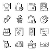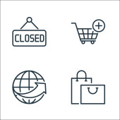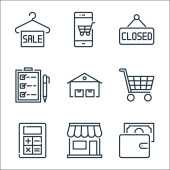 ikony linii zakupów online. zestaw liniowy. zestaw linii wektorowych jakości, takich jak sklep, wiadomości, płatność smartfona, kupon, ekran komputera, tag sprzedaży, rachunek, koszyk dostawy