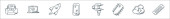 ikony linii zakupów online. zestaw liniowy. wysokiej jakości zestaw linii wektorowych, takich jak mastercard, kalkulator, licznik gotówki, wyprzedane, płatność debetowa, bankomat, ekran komputera