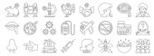 ikony linii przesyłu wirusa. zestaw liniowy. wysokiej jakości zestaw linii wektorowych, takich jak uścisk dłoni, rozłożone, rękawiczki, usta, odległość, worek krwi, drób, toaleta