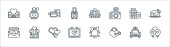 ikony linii barów. zestaw liniowy. wysokiej jakości zestaw linii wektorowych, takich jak czajnik, mojito, otwieracz do butelek, beczka, kubek piwa, whisky, zamknięty, gramofon