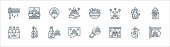 ikony festiwalu muzycznego. zestaw liniowy. wysokiej jakości zestaw linii wektorowych, takich jak ogrodzenie, muzyka, id card, hot dog, WC, okulary przeciwsłoneczne, dysk dżokej, sprzęt