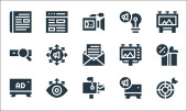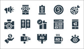 ikony linii reklamowej. zestaw liniowy. wysokiej jakości zestaw linii wektorowych, takich jak reklama, kampania, użytkownicy, broszura, prezent, marketing mobilny, marketing wideo, strategia, megafon