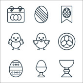 Ikony wielkanocne. zestaw liniowy. wysokiej jakości zestaw linii wektorowych, takich jak pudełko prezentów, pisanki, pisklęta, pisanki, jaja, motyl, święty kielich, gołąb