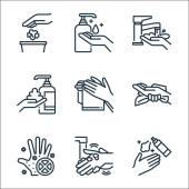 Zdjęcie "myć ręce ikony linii. zestaw liniowy. wysokiej jakości zestaw linii wektorowych, takich jak mycie rąk, mycie rąk, mycie rąk, rąk, suszarka," może być wykorzystywane do celów osobistych i komercyjnych zgodnie z warunkami zakupionej licencji Royalty-free. Obraz jest dostępny do pobrania w jakości wysokiej rozdzielczości do 5760x3840.