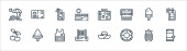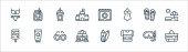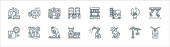 ikony linii letniej. zestaw liniowy. wysokiej jakości zestaw linii wektorowych, takich jak ręcznik plażowy, t shirt, deska surfingowa, namiot kempingowy, przyczepa kempingowa, plaża, top cysterna, smoothie
