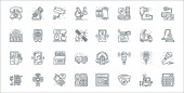 ikony linii urządzeń technologicznych. zestaw liniowy. wysokiej jakości wektor linii zestaw, takich jak drukarka, lampa sypialnia, usb, kamera cctv, serwer, gitara, odtwarzacz muzyki, kalkulator, kabel przedłużający