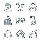 ikony linii dobrostanu zwierząt. zestaw liniowy. zestaw linii wektorowych jakości, takich jak nietoperze, jaja ekologiczne, klatka dla ptaków, pies, szczepienia, dzika przyroda, handel zwierzętami, mleko migdałowe, opieka nad zwierzętami