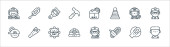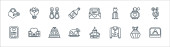 ikony linii ślubnej. zestaw liniowy. wysokiej jakości zestaw linii wektorowych, takich jak pan młody, przekąski, garnitur, Biblia, miłość, róża, druhna, panna młoda