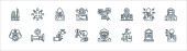 ikony linii ślubnej. zestaw liniowy. wysokiej jakości zestaw linii wektorowych, takich jak propozycja, ksiądz, druhna, kamera wideo, lokalizacja, łuk Kupidyna, perfumy, płeć