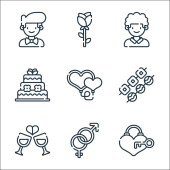Zdjęcie "ikony linii ślubnej. zestaw liniowy. wysokiej jakości zestaw linii wektorowych, takich jak butelka wina, przekąski, kamera wideo, prezenty, ślub, girlandy, naszyjnik, propozycja" może być wykorzystywane do celów osobistych i komercyjnych zgodnie z warunkami zakupionej licencji Royalty-free. Obraz jest dostępny do pobrania w jakości wysokiej rozdzielczości do 5760x3840.