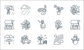 ikony linii ogrodniczej. zestaw liniowy. wysokiej jakości zestaw linii wektorowych, takich jak ogród, ławka, piła do przycinania, żółw, nożyczki, dżdżownica, kaktus, roślina