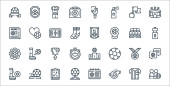 ikony piłki nożnej. zestaw liniowy. wysokiej jakości zestaw linii wektorowych, takich jak stadion, piłka nożna, skarpetki, puchar, piłka nożna, piłka, gracze
