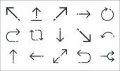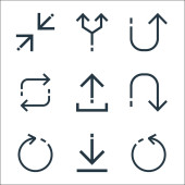 ikony linii strzałek. zestaw liniowy. wysokiej jakości zestaw linii wektorowych, takich jak strzałka w górę, strzałka obrotowa, zmiana rozmiaru