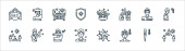 ikony linii przesyłu wirusa. zestaw liniowy. wysokiej jakości zestaw linii wektorowych, takich jak pielęgniarka, lekarz, mycie rąk, mycie rąk, czat, pielęgniarka, mycie rąk, kaszel