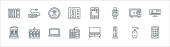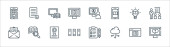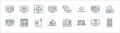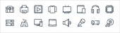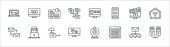 ikony linii telekomunikacyjnych. zestaw liniowy. wysokiej jakości zestaw linii wektorowych, takich jak telekomunikacja, serwery, czas, stadiony, wideo, dom, online, cloud computing