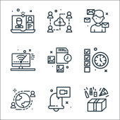 ikony linii telekomunikacyjnych. zestaw liniowy. zestaw linii wektorowych jakości, takich jak spotkanie, kamera internetowa, wymiana