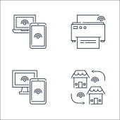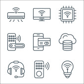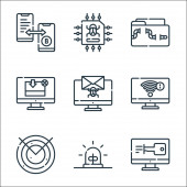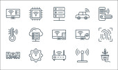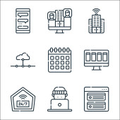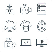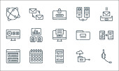 ikony linii telekomunikacyjnych. zestaw liniowy. zestaw linii wektorowych jakości, takich jak modem, online, chmura, dom, online, serwer, vpn, czas