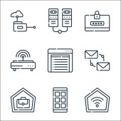 Zdjęcie "ikony linii telekomunikacyjnych. zestaw liniowy. zestaw linii wektorowych jakości, takich jak modem, online, chmura, dom, online, serwer, vpn, czas" może być wykorzystywane do celów osobistych i komercyjnych zgodnie z warunkami zakupionej licencji Royalty-free. Obraz jest dostępny do pobrania w jakości wysokiej rozdzielczości do 5760x3840.
