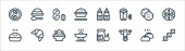 ikony linii kosmicznej. zestaw liniowy. zestaw linii wektorowych jakości, takich jak ziemia, blaster, kratery księżyca, obserwatorium, pies, Jowisz, antena satelitarna, zaćmienie
