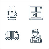 Ikony linii dostawy. zestaw liniowy. wysokiej jakości zestaw linii wektorowych, takich jak pakiet, przenośnik, koszyk, przechowywanie, komputer, zegar godzinowy, samochód dostawczy, call center