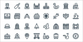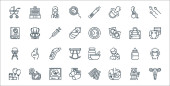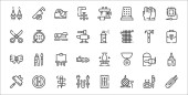 ikony dnia pracy. zestaw liniowy. wysokiej jakości zestaw linii wektorowych, takich jak dzień pracy, dzień pracy, nakrętka, bariera, łopata, rękawica robocza, topór, ustawienia