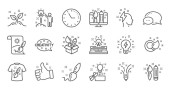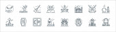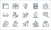ikony startupów. zestaw liniowy. zestaw linii wektorowych jakości, takich jak klepsydra, nawigacja, torba pieniędzy, lokalizacja, cel, optymalizacja, sieć społeczna, lornetka, lifebouy