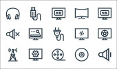 Zdjęcie "ikony linii kina. zestaw liniowy. wysokiej jakości zestaw linii wektorowych, takich jak kino, led TV, stara kamera wideo, projektor, megafon, projektor, bilety, teatr, klapperboard" może być wykorzystywane do celów osobistych i komercyjnych zgodnie z warunkami zakupionej licencji Royalty-free. Obraz jest dostępny do pobrania w jakości wysokiej rozdzielczości do 5760x3840.