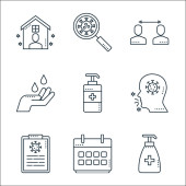 zakażenie wirusem i ikony linii. zestaw liniowy. zestaw linii wektorowych jakości, takich jak alkohol, stetoskop, kontrola, kontrola, mężczyzna, wirus, kobieta, wirus