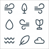 ikony linii natury. zestaw liniowy. zestaw linii wektorowych jakości, takich jak kwiat, wiatr, drzewo