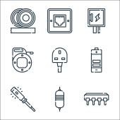 ikony linii urządzeń gospodarstwa domowego. zestaw liniowy. wysokiej jakości zestaw linii wektorowych, takich jak maszyna do szycia, router, gniazdo