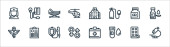 ikony linii hotelowej. zestaw liniowy. wysokiej jakości zestaw linii wektorowych, takich jak hantel, suszarka, klimatyzacja, schowek, parking, recepcja, pralka, ręka