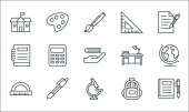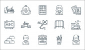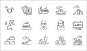 ikony linii przedszkola. zestaw liniowy. wysokiej jakości wektor linii zestaw takich jak origami, bloki, zabawki abacus, slajdów, biurko, książka, student, student