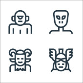 fantastyczne postacie linii ikon. zestaw liniowy. wysokiej jakości zestaw linii wektorowych, takich jak geniusz, nekromanta, drzewo, faun, syrena, athena, pirat, śmierć, harpia