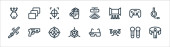 ikony wirtualnej rzeczywistości. zestaw liniowy. wysokiej jakości zestaw linii wektorowych, takich jak czujniki, okulary VR, skanowanie ciała, d, ar, tektura, d hologram, opcje
