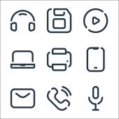 ikony linii multimedialnych. zestaw liniowy. wysokiej jakości zestaw linii wektorowych, takich jak wideo, wideo, słuchawki, nagrywanie, poprzedni, zminimalizować, menu, wideo