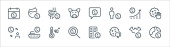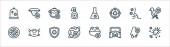 ikony linii koronawirusów. zestaw liniowy. zestaw linii wektorowych jakości, takich jak alarm, ostrzeżenie, leki, rozprzestrzenianie się, znaleźć, ostrzeżenie, globalny, zegar