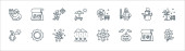 zakaźne ikony linii pandemii. zestaw liniowy. zestaw linii wektorowych jakości, takich jak raport zdrowotny, maska, temperatura, izolacja, wirus, pogotowie ratunkowe, analiza danych, probówka