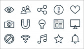 ikony linii niezbędne dla sieci web. zestaw liniowy. wysokiej jakości wektor linii zestaw takich jak magnes, globalny, odblokowanie, wifi, jak bateria, alarm, zakaz, kursor