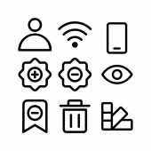 ikony linii niezbędne dla sieci web. zestaw liniowy. zestaw linii wektorowych jakości, takich jak książka adresowa, minus, alarm, wifi, plik, bateria, zoom out, informacje