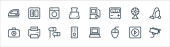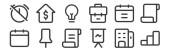 ikony marketingowe linii biznesowych. zestaw liniowy. zestaw linii wektorowych jakości, takich jak bilet, menu, podręcznik, kalendarz, pracownik, kalkulator, plik, kalendarz
