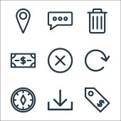 ikony marketingowe linii biznesowych. zestaw liniowy. wysokiej jakości zestaw linii wektorowych, takich jak kosz na śmieci, menu, kalendarz, książka, wykres, pin, biuro, kalkulator, bieg