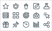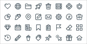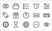 ikony linii interfejsu użytkownika. zestaw liniowy. zestaw linii wektor jakości, takie jak puzzle, diament, e-mail, biuletyn, flaga, globus, zakładka, ołówek, prezent