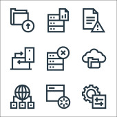 ikony linii interfejsu użytkownika. zestaw liniowy. wysokiej jakości zestaw linii wektorowych, takich jak gumka, folder, aplikacje, czat, ustawienia, spinacz do papieru, przeglądarka internetowa, wsparcie