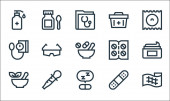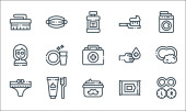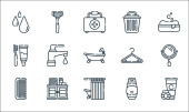 ikony linii czyszczącej. zestaw liniowy. wysokiej jakości zestaw linii wektorowych, takich jak klips, pranie ręczne, szczotka, śmieci, wirus, kosiarka, kosz, tłok, płyn do prania