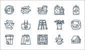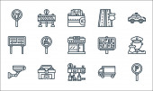 ikony linii autostrady. zestaw liniowy. zestaw linii wektorowych jakości, takich jak skrzynka narzędziowa, portfel, stożek drogowy, restauracja, stacja benzynowa, autostrada, wezwanie alarmowe, samochód ciężarowy, autostrada