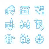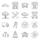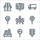 ikony linii autostrady. zestaw liniowy. zestaw linii wektorowych jakości, takich jak samochód ciężarowy, radiowóz, autostrada, skrzynka narzędziowa, sygnalizacja świetlna, mapa drogowa, samochód, bariera