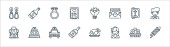 ikony linii ślubnej. zestaw liniowy. wysokiej jakości wektor linii zestaw takich jak propozycja, garnitur, kurczak, miłość, perfumy, kolczyki, bukiet kwiatów