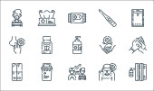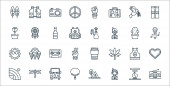 ikony linii ślubnej. zestaw liniowy. wysokiej jakości zestaw linii wektorowych, takich jak bukiet kwiatów, girlandy, świece, butelka wina, ksiądz, miesiąc miodowy, miłość, kwiaty, ślub