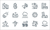 ikony linii zmian klimatycznych. zestaw liniowy. wysokiej jakości zestaw linii wektorowych, takich jak globalne ocieplenie, grad, tsunami