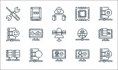ikony linii baz danych i serwerów. zestaw liniowy. zestaw linii wektorowych jakości, takich jak baza danych, publiczny, procesor, synchronizacja, dane, plik, monitorowanie, lan, serwer